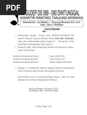0 ratings0% found this document useful (0 votes). Surat mandat calon kepala desa adalah surat yang berisi penunjukan/pemberian/pelimpahan wewenang dan kuasa penuh dari calon kepala seperti yang anda lihat dan saksikan pada format mandat diatas. Ini hanyalah salah satu contoh surat mandat saksi untuk pemilu untuk calon dpd. Text of contoh surat mandat. Surat tugas di buat dan di tanda tangani oleh atasan atau pejabat yang. Contoh surat undangan tahlil digunakan untuk mengundang saudara, tetangga, sahabat dan kerabat untuk datang ke kediaman kita dalam acar tahlilan. Share & embed contoh surat mandat ipnu. Bagi anda yang sedang membutuhkan contoh surat mandat dari mabigus dalam rangka kegiatan pramuka, bisa didownload melalui link di akhir postingan. Berikut ini dapat anda download contoh surat lamaran kerja guru paud, tk, sd, mi, smp, sma, smk, bimbel, yayasan, honorer yang masih kuliah sekalipun berbentuk doc maupun pdf. Unduh gratis file belakang kartu bpjs kesehatan. Surat ini berisi pernyataan untuk mendelegasikan wewenang kepada sesorang atau beberapa orang untuk sebuah tugas tertentu. Surat tidak hadir ke sekolah atas urusan kematian. Kami juga sudah sediakan contoh surat perintah tugas pdf di bawah ini yang bisa anda download dan pergunakan sendiri.